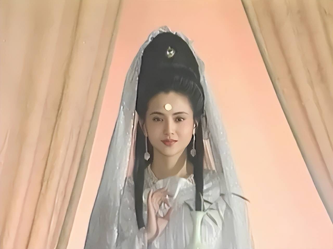 身着白衣、头戴金冠,眉眼低垂时圣洁庄重,目光流转时慈悲温婉,至今仍是很多人心中 “最美观音” 的代名词。